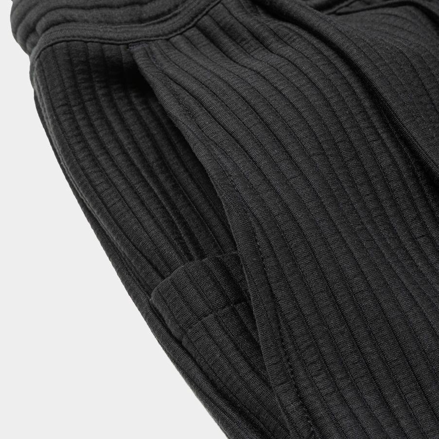 UNEVEN FABRIC WIDE SLACKS OFF BLACK