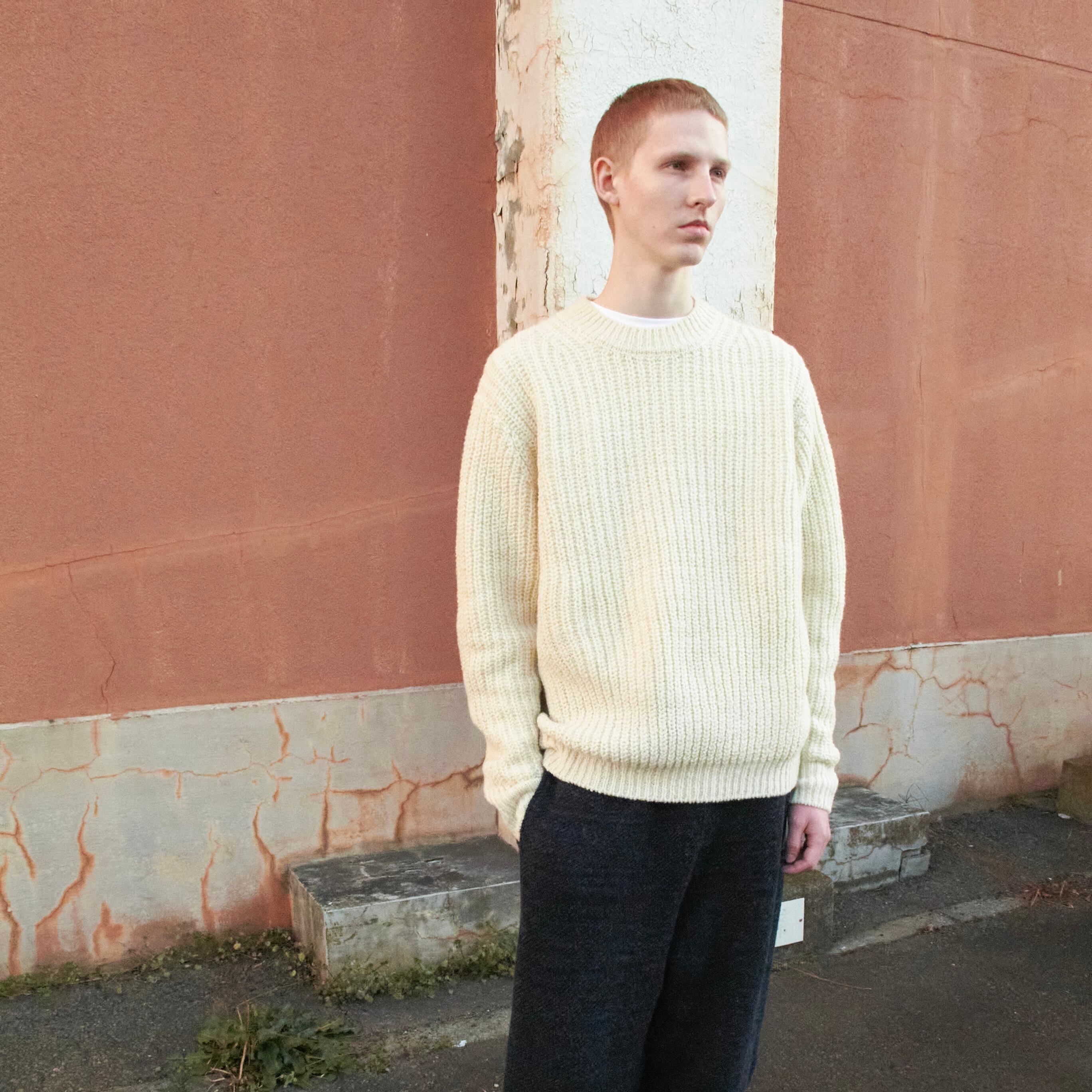 ニットウェアの新しい可能性と価値観をコンセプトに、従来のニットウェアを再解釈したアプローチや、横編みと丸編みの融合、日常生活と共存したデザインの探求を行う。