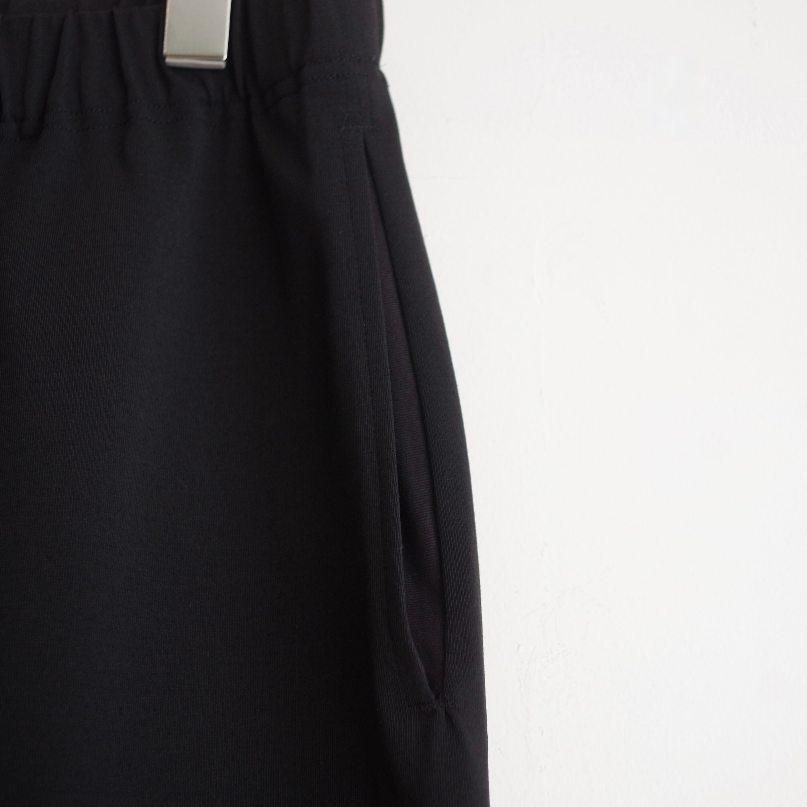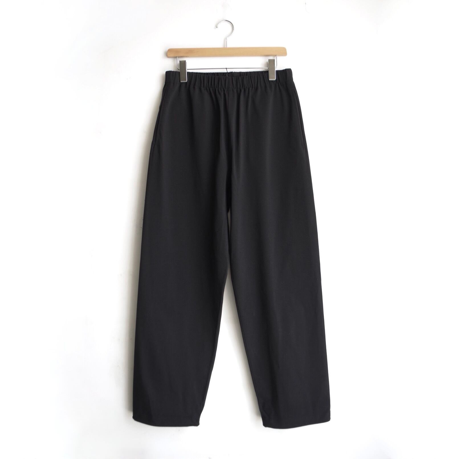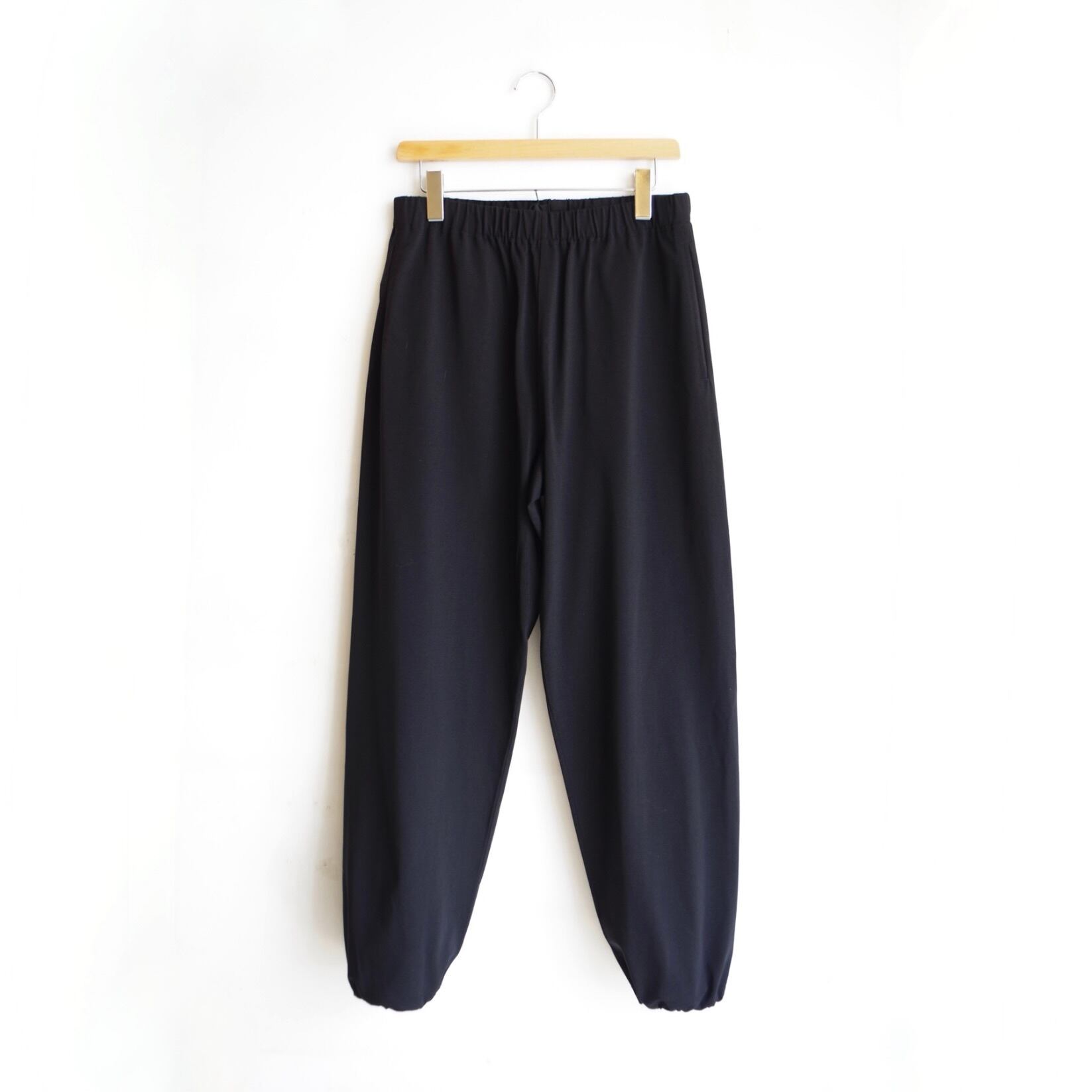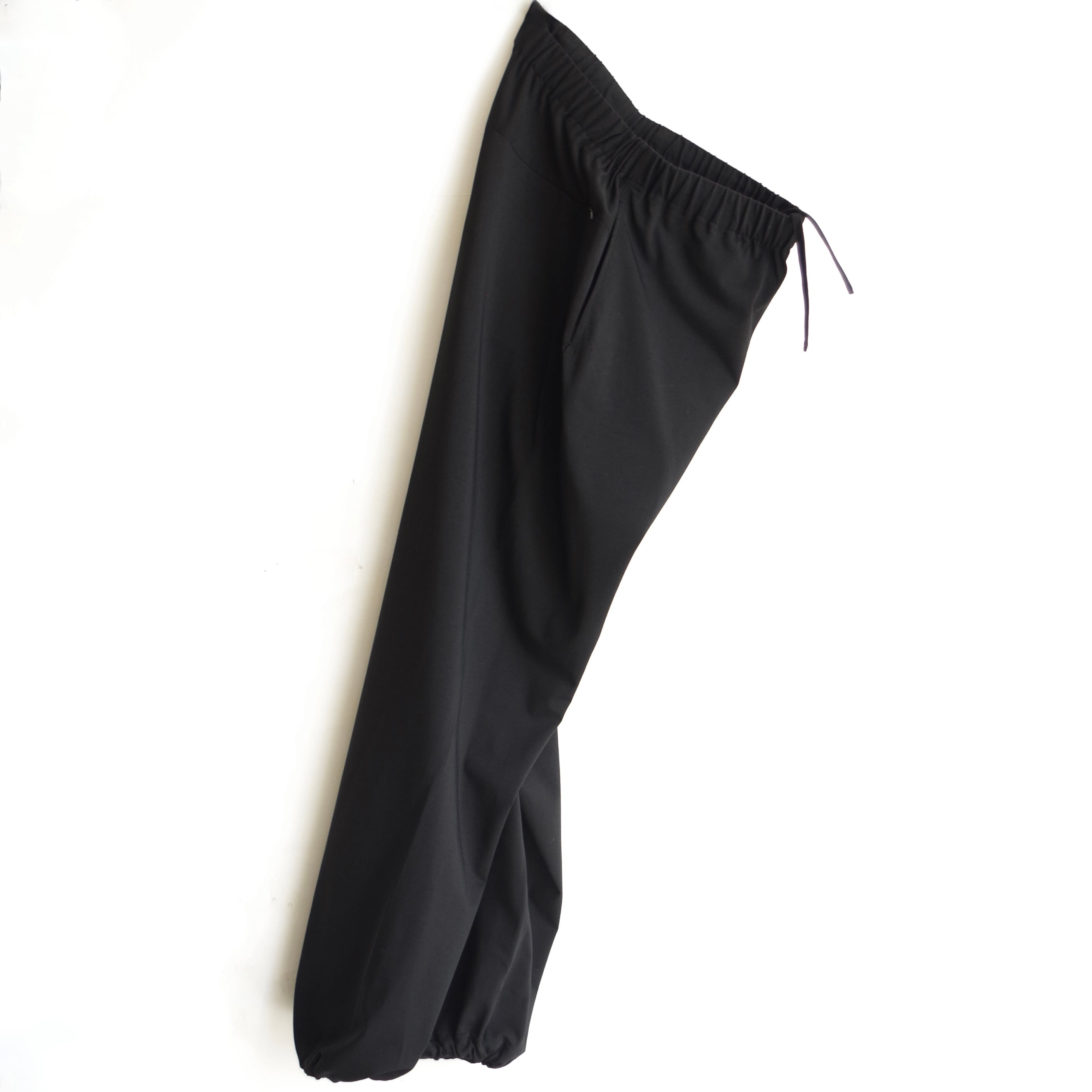 サイドシームがなく、ウエストはゴム仕様で裾もドローコードで調整可能なイージーパンツ。