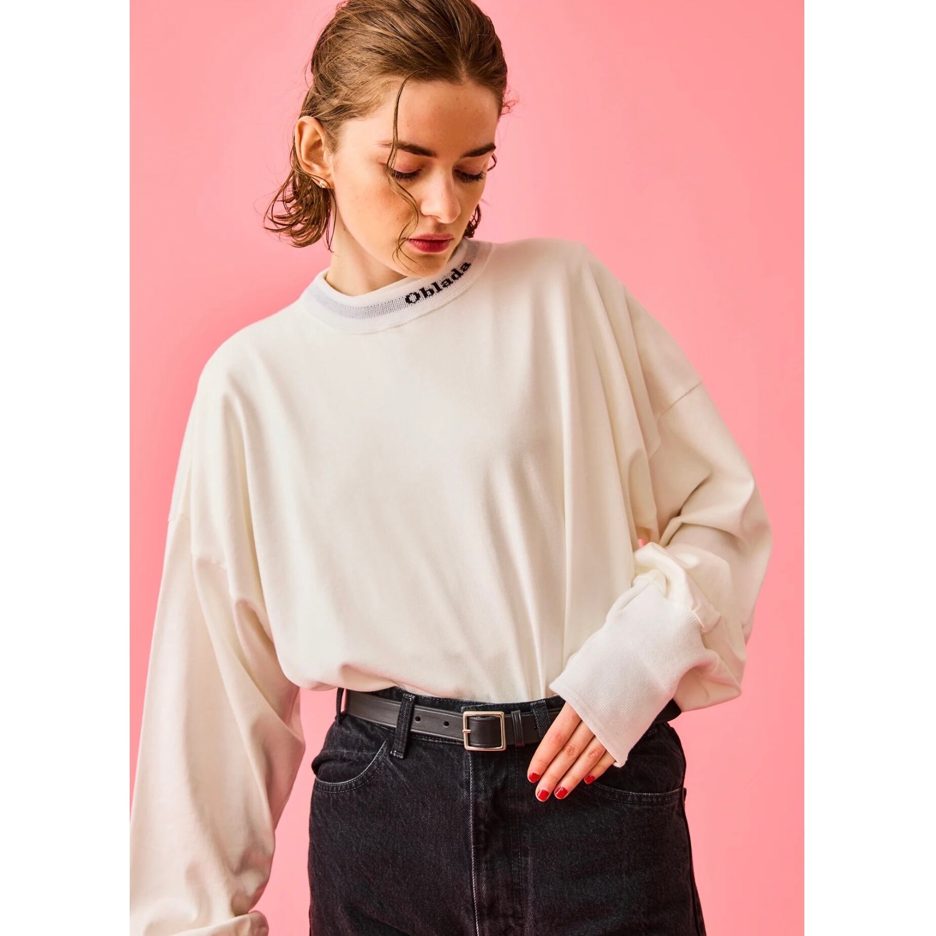 襟リブにジャガードでロゴが入っていてさりげないワンポイント◎