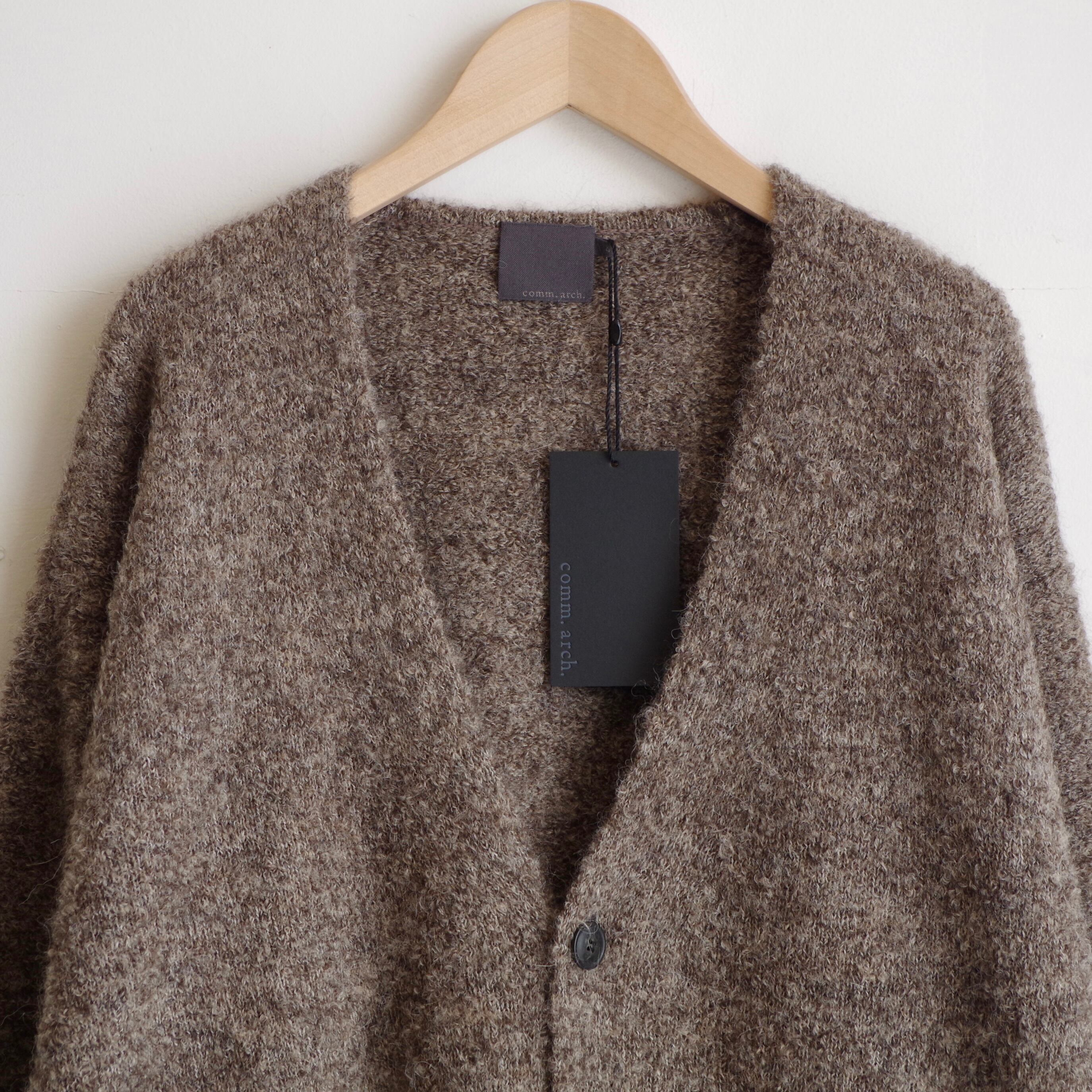 型はシンプルなVネックカーディガ ンです。
