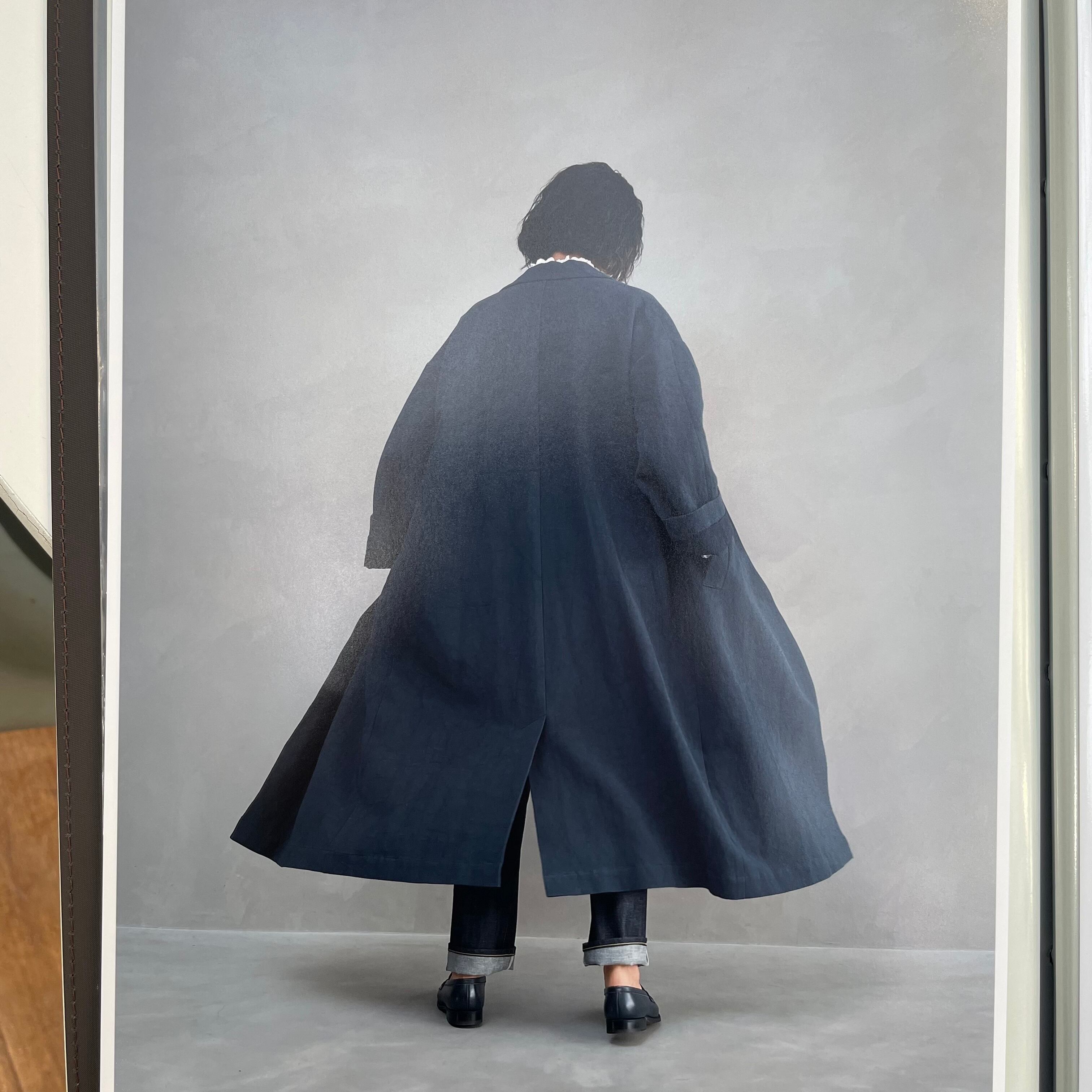 同素材のオーバーサイズコートとのセットで合わせても素敵です。